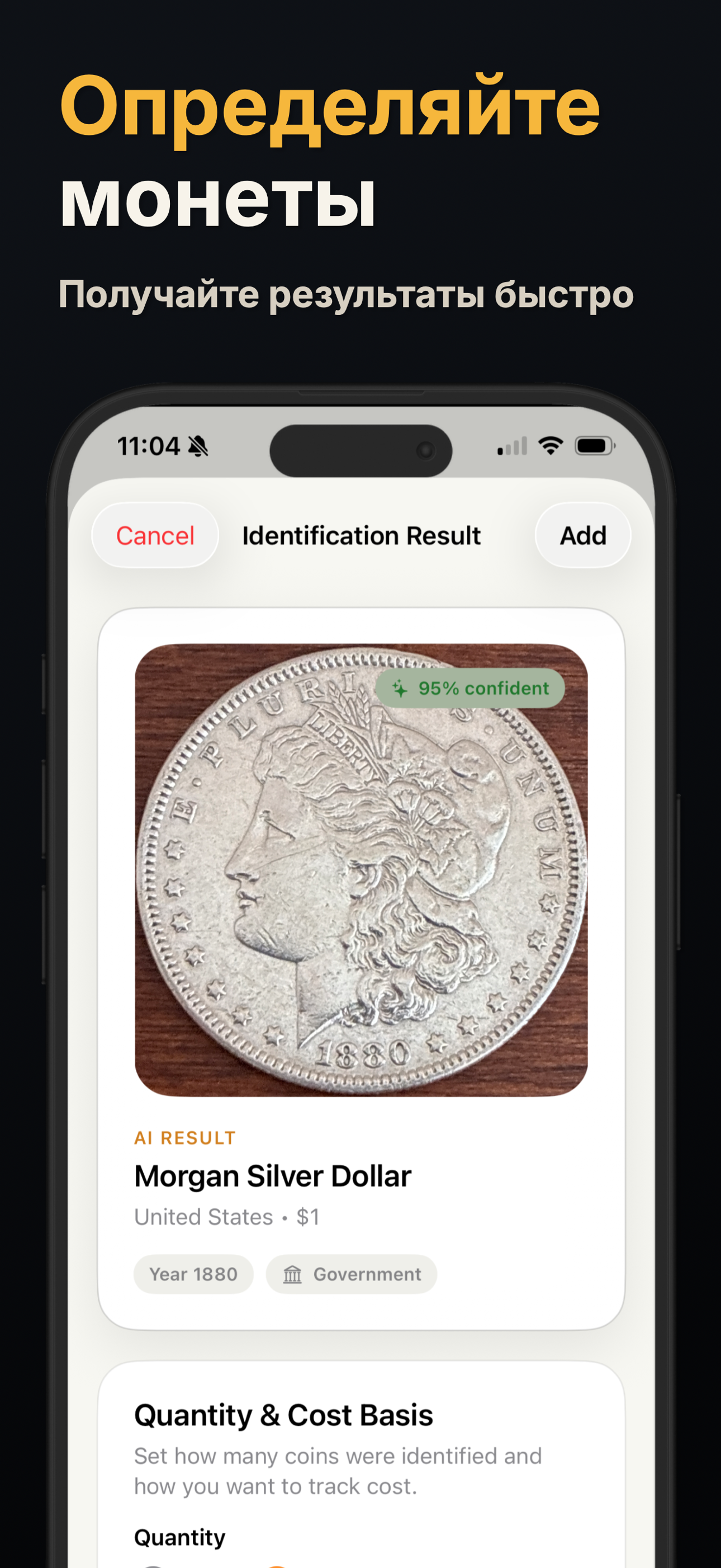 Каждое сканирование может показать название монеты, страну, диапазон дат, номинал, состав металла и оценку стоимости, если она доступна. После этого вы можете сохранить результат или продолжить исследование с более понятной отправной точки.